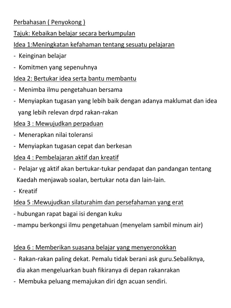 Pada ketika itu, para pelajar pasti akan terdedah akan kepelbagaian sudut pandangan yang dilihat daripada. Bincangkan tajuk kebaikan belajar secara berkumpulan belajar secara kumpulan sangat baik. Belajar secara berkumpulan memang banyak kebaikan. Jadi, kita mestilah pandai mengawal keadaan dan kita juga boleh mencorakkan bagaimana cara nak belajar secara berkumpulan. Berikut ini pengertian belajar, tujuan belajar dan cara belajar yang dibahas secara lengkap. Ringkasan kebaikan belajar secara berkumpulan. Dalam usaha untuk mencapai kejayaan dalam peperiksaan, pelbagai kaedah belajar boleh diamalkan. Walaubagaimanapun ada sukan yang kian diminati ramai iaitu berbasikal. Dalam sejarah, harus diakui, muslim belajar banyak dari raja habbasyah yang kristen. Kita boleh dapat banyak faedah. Untuk melihat detail lagu contoh karangan faedah belajar secara berkumpulan contoh klik salah satu judul yang cocok. Belajar secara berkumpulan bermaksud belajar dalan kumpulan yang terdiri daripada 2 hingga 5 orang. Ramai murid kurang tahu faedah belajar secara berkumpulan.